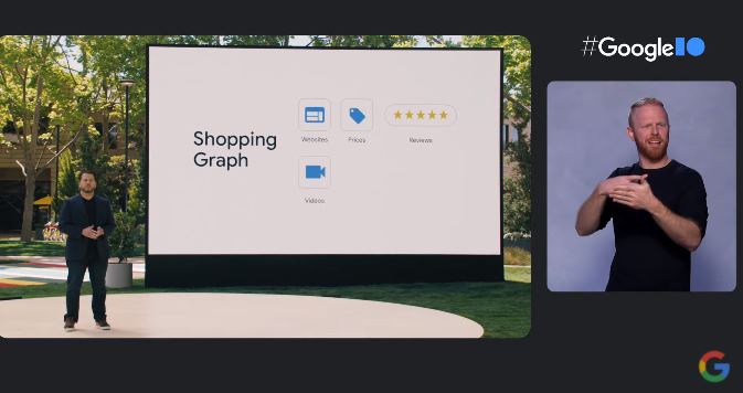 The new "Shopping Graph" is a knowledge graph for shopping that shows reviews, pricing, video and more. It uses Lens, Photos, Search, Chrome and YouTube to gather information and allow users to shop easily.