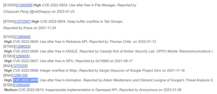 The shortcoming, tracked CVE-2022-0609, is described as a use-after-free vulnerability in the Animation component that, if successfully exploited, could lead to corruption of valid data and the execution of arbitrary code on affected systems.